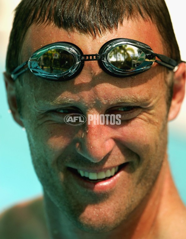 Chris Grant of the Bulldogs relaxes during a training session at the Parap pool during the Western Bulldogs AFL Community Camp February 23, 2006 in Darwin, Australia.