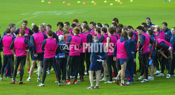 Demons coach Neale Daniher talks to his players during a Melbourne training session at Junction Oval May 10, 2006 in Melbourne, Australia.