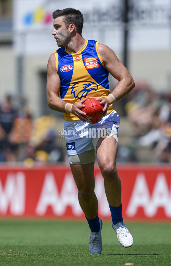 ADELAIDE, AUSTRALIA - MARCH 02: Elliot Yeo of the Eagles during the 2024 AFL Community Series match between Adelaide Crows and West Coast Eagles at Hisense Stadium on March 02, 2024 in Adelaide, Australia. (Photo by Mark Brake/Getty Images via AFL Photos)