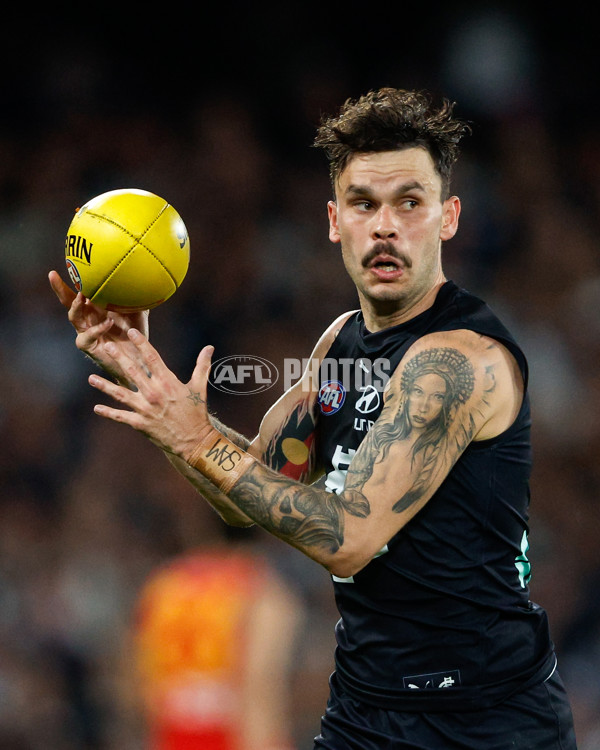 MELBOURNE, AUSTRALIA - APRIL 13: Zac Williams of the Blues in action during the 2024 AFL Round 05 match between the Carlton Blues and the Adelaide Crows at Marvel Stadium on April 13, 2024 in Melbourne, Australia. (Photo by Dylan Burns/AFL Photos)