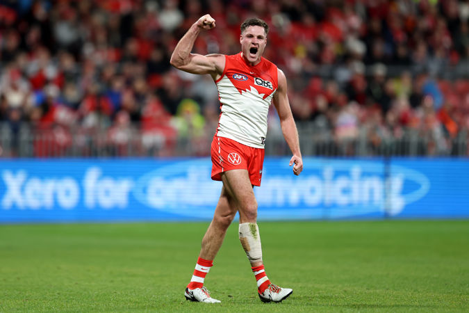 SYDNEY, AUSTRALIA - JUNE 22: Lewis Melican of the Swans in action during the round 15 AFL match between Greater Western Sydney Giants and Sydney Swans at ENGIE Stadium on June 22, 2024 in Sydney, Australia. (Photo by Jason McCawley/AFL Photos)