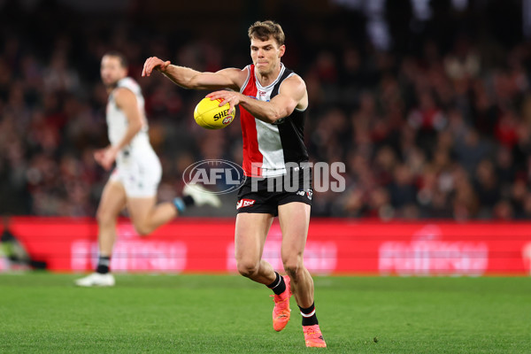 MELBOURNE, AUSTRALIA - JUNE 30: Mason Wood of the Saints in action during the round 16 AFL match between St Kilda Saints and Port Adelaide Power at Marvel Stadium on June 30, 2024 in Melbourne, Australia. (Photo by Graham Denholm/AFL Photos)