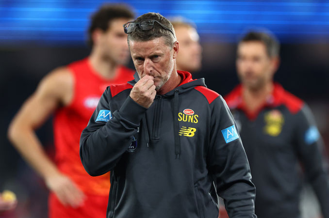 MELBOURNE, AUSTRALIA - JULY 06: Noah Anderson of the Suns takes possession of the ball during the round 17 AFL match between North Melbourne Kangaroos and Gold Coast Suns at Marvel Stadium, on July 06, 2024, in Melbourne, Australia. (Photo by Morgan Hancock/AFL Photos)