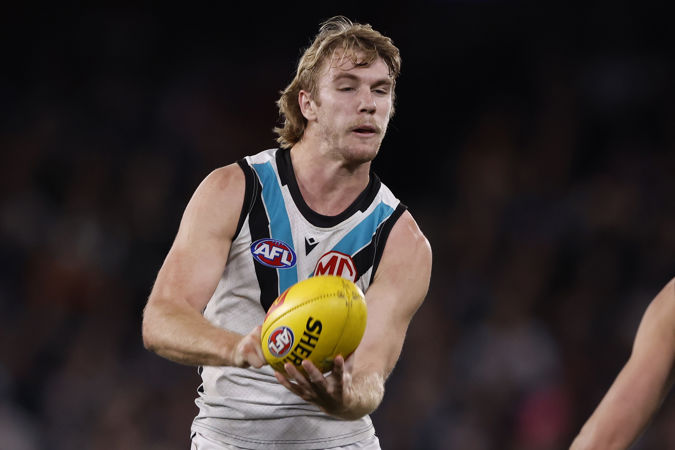 MELBOURNE, AUSTRALIA - JULY 26: Michael Voss, Senior Coach of the Blues looks on during the 2024 AFL Round 20 match between the Carlton Blues and the Port Adelaide Power at Marvel Stadium on July 26, 2024 in Melbourne, Australia. (Photo by Michael Willson/AFL Photos)