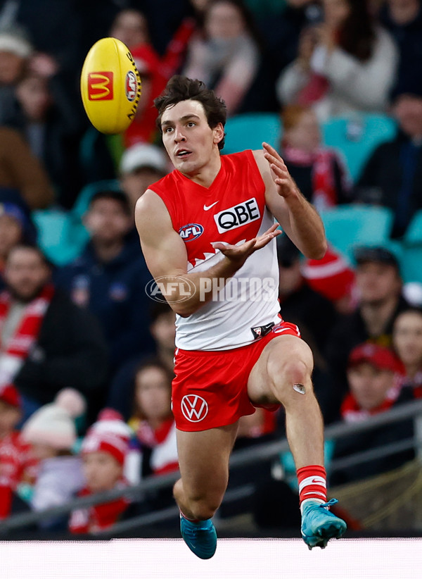SYDNEY, AUSTRALIA - JULY 28: Errol Gulden of the Swans marks the ball during the 2024 AFL Round 20 match between the Sydney Swans and the Western Bulldogs at The Sydney Cricket Ground on July 28, 2024 in Sydney, Australia. (Photo by Michael Willson/AFL Photos)
