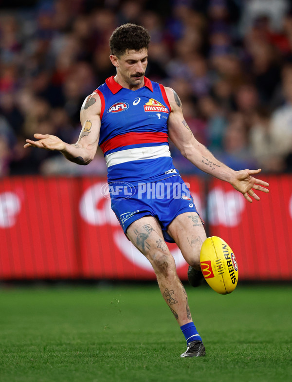 MELBOURNE, AUSTRALIA - AUGUST 02: Tom Liberatore of the Bulldogs in action during the 2024 AFL Round 21 match between Footscray and the Melbourne Demons at Marvel Stadium on August 02, 2024 in Melbourne, Australia. (Photo by Michael Willson/AFL Photos)