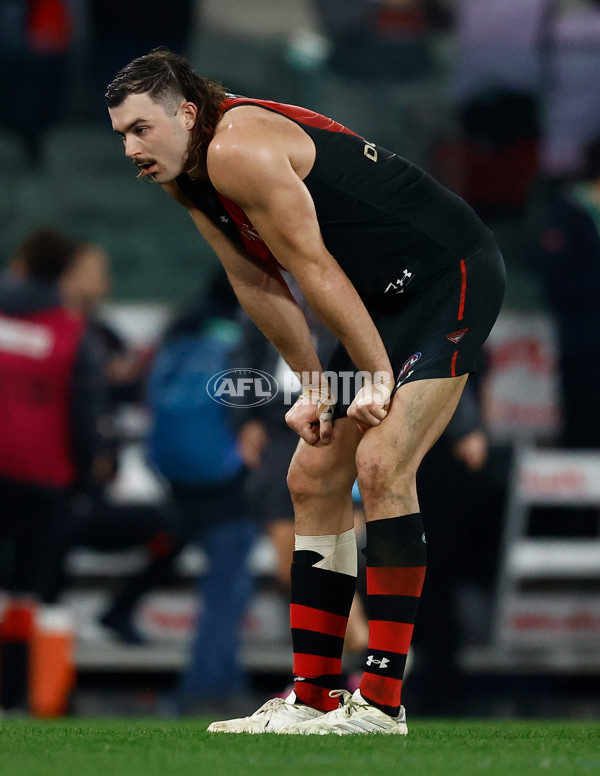MELBOURNE, AUSTRALIA - AUGUST 10: Sam Draper of the Bombers looks dejected after a loss during the 2024 AFL Round 22 match between the Essendon Bombers and the Gold Coast SUNS at Marvel Stadium on August 10, 2024 in Melbourne, Australia. (Photo by Michael Willson/AFL Photos)