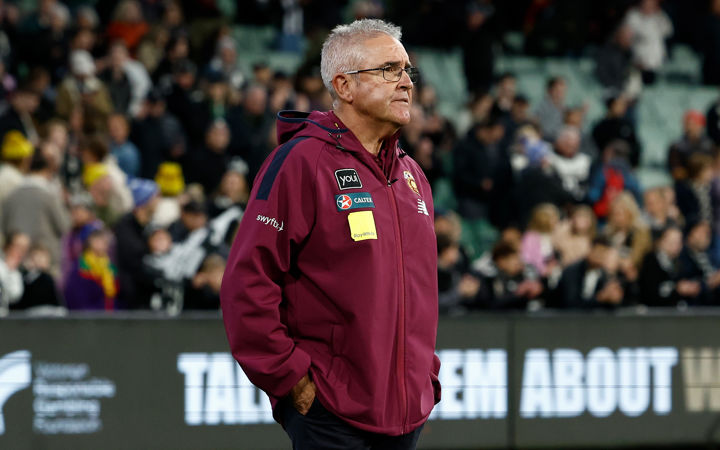 MELBOURNE, AUSTRALIA - AUGUST 17: Chris Fagan, Senior Coach of the Lions and his team look dejected after during the round 23 AFL match between Collingwood Magpies and Brisbane Lions at Melbourne Cricket Ground, on August 17, 2024, in Melbourne, Australia. (Photo by Daniel Pockett/Getty Images via AFL Photos)