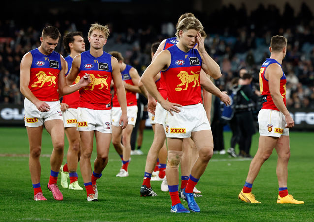 MELBOURNE, AUSTRALIA - AUGUST 17: Will Ashcroft of the Lions looks dejected after a loss during the 2024 AFL Round 23 match between the Collingwood Magpies and the Brisbane Lions at The Melbourne Cricket Ground on August 17, 2024 in Melbourne, Australia. (Photo by Michael Willson/AFL Photos)