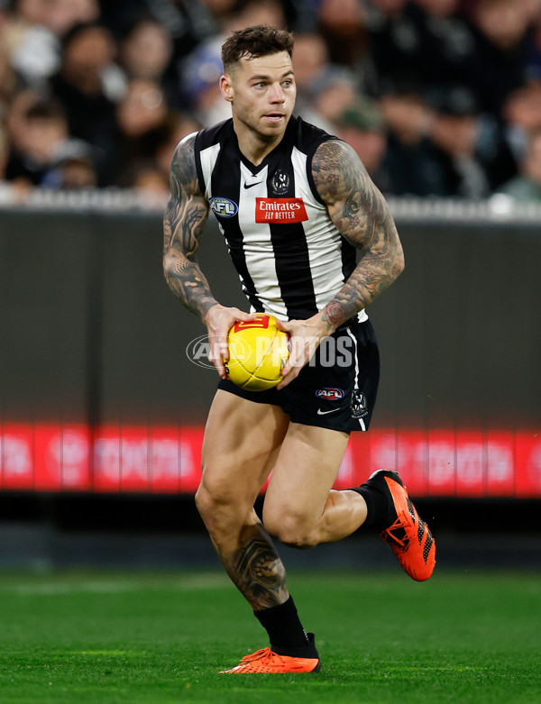 MELBOURNE, AUSTRALIA - AUGUST 17: Jamie Elliott of the Magpies in action during the 2024 AFL Round 23 match between the Collingwood Magpies and the Brisbane Lions at The Melbourne Cricket Ground on August 17, 2024 in Melbourne, Australia. (Photo by Michael Willson/AFL Photos)
