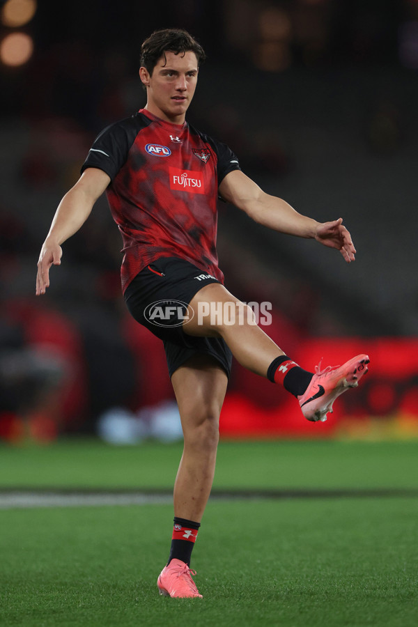 MELBOURNE, AUSTRALIA - AUGUST 16: Jye Caldwell of the Bombers warms up before the round 23 AFL match between Essendon Bombers and Sydney Swans at Marvel Stadium, on August 16, 2024, in Melbourne, Australia. (Photo by Daniel Pockett/Getty Images via AFL Photos)
