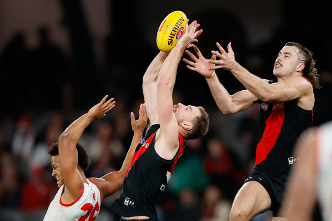 MELBOURNE, AUSTRALIA - AUG 16: Will Hayward of the Swans kicks a goal during the 2024 AFL Round 23 match between Essendon Bombers and the Sydney Swans at Marvel Stadium on August 16, 2024 in Melbourne, Australia. (Photo by Dylan Burns/AFL Photos)