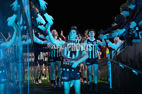 ADELAIDE, AUSTRALIA - AUG 17: Connor Rozee of the Power celebrates their win during the 2024 AFL Round 23 match between the port Adelaide Power and the Adelaide Crows at Adelaide Oval on August 17, 2024 in Adelaide, Australia. (Photo by James Elsby/AFL Photos)