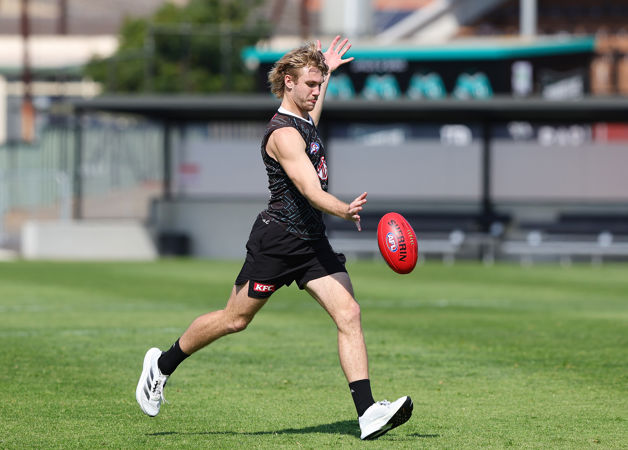 ADELAIDE, AUSTRALIA - SEPTEMBER 12: Todd Marshall during a Port Adelaide Power captain's run at Alberton Oval on September 12, 2024 in Adelaide, Australia. (Photo by Sarah Reed/Getty Images via AFL Photos)