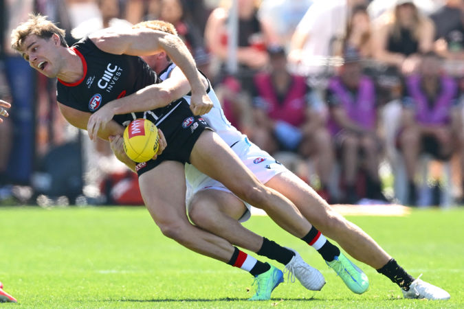 MELBOURNE, AUSTRALIA - MARCH 01: Joe Richards of the Power handballs during the 2025 AAMI AFL Community Series match between St Kilda Saints and Port Adelaide Power at RSEA Park on March 01, 2025 in Melbourne, Australia. (Photo by Quinn Rooney/Getty Images via AFL Photos)