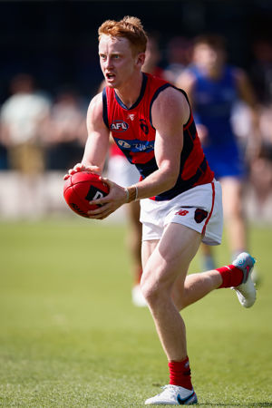 MELBOURNE, AUSTRALIA - FEBRUARY 22: Will Phillips of the Kangaroos and Jake Lever of the Demons collide while competing for the ball during the 2025 AFL match simulation between the North Melbourne Kangaroos and Melbourne Demons at Arden Street on February 22, 2025 in Melbourne, Australia. (Photo by Dylan Burns/AFL Photos)