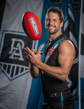 ADELAIDE, AUSTRALIA - JANUARY 30: Travis Boak during the Port Adelaide Power 2025 Official Team Photo Day at Alberton Oval on January 30, 2025 in Adelaide, Australia. (Photo by Sarah Reed/AFL Photos)