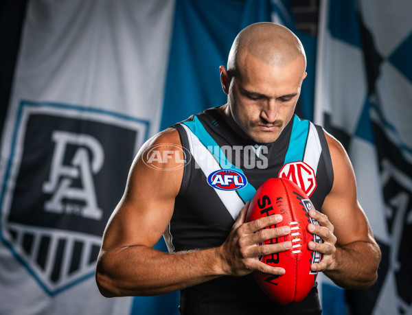ADELAIDE, AUSTRALIA - JANUARY 30: Sam Powell-Pepper during the Port Adelaide Power 2025 Official Team Photo Day at Alberton Oval on January 30, 2025 in Adelaide, Australia. (Photo by Sarah Reed/AFL Photos)