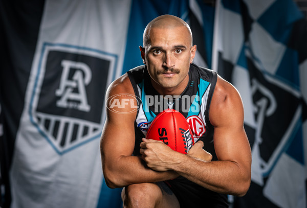 ADELAIDE, AUSTRALIA - JANUARY 30: Sam Powell-Pepper during the Port Adelaide Power 2025 Official Team Photo Day at Alberton Oval on January 30, 2025 in Adelaide, Australia. (Photo by Sarah Reed/AFL Photos)