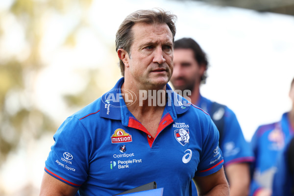 BALLARAT, AUSTRALIA - MAY 03: Luke Beveridge, Head Coach of the Bulldogs departs the field following the round eight AFL match between Western Bulldogs and Port Adelaide Power at Mars Stadium, on May 03, 2025, in Ballarat, Australia. (Photo by Morgan Hancock/Getty Images via AFL Photos)