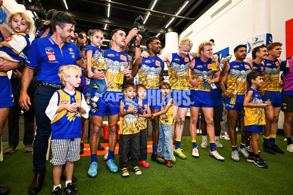 PERTH, AUSTRALIA - MAY 18: The Eagles sing the team song after the win during the 2025 AFL Round 10 match between Waalitj Marawar (West Coast Eagles) and Euro-Yroke (St Kilda Saints) at Optus Stadium on May 18, 2025 in Perth, Australia. (Photo by Daniel Carson/AFL Photos)