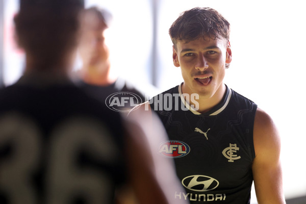 MELBOURNE, AUSTRALIA - MARCH 12: Lucas Camporeale of the Blues competes during a Carlton Blues AFL training session at Ikon Park on March 12, 2025 in Melbourne, Australia. (Photo by Daniel Pockett/Getty Images via AFL Photos)