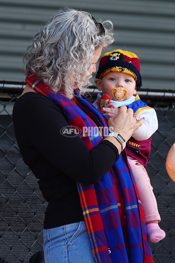 MELBOURNE, AUSTRALIA - SEPTEMBER 07: A young Lions fan shows their support during the round two AFLW match between Melbourne Demons and Brisbane Lions at Casey Fields, on September 07, 2024, in Melbourne, Australia. (Photo by Morgan Hancock/AFL Photos)