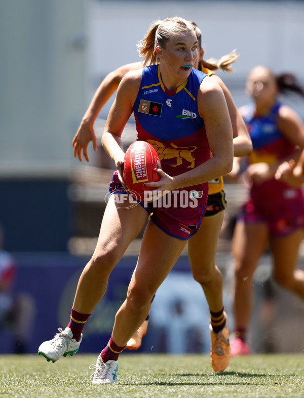 MELBOURNE, AUSTRALIA - NOVEMBER 10: Jennifer Dunne of the Lions in action during the 2024 AFLW Second Qualifying Final match between the Hawthorn Hawks and the Brisbane Lions at IKON Park on November 10, 2024 in Melbourne, Australia. (Photo by Michael Willson/AFL Photos)