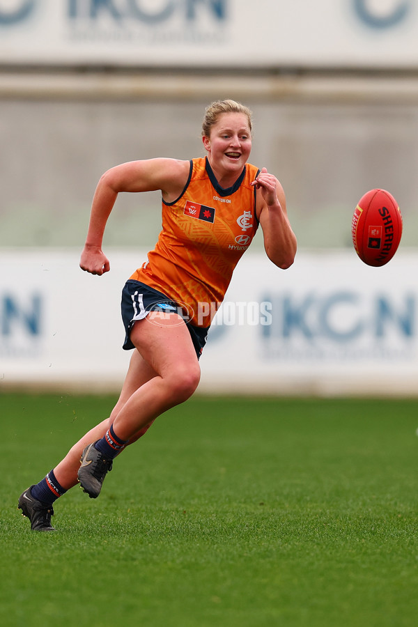 MELBOURNE, AUSTRALIA - AUGUST 27: Taylor Ortlepp of the Blues trains during a Carlton Blues AFLW training session at Ikon Park on August 27, 2024 in Melbourne, Australia. (Photo by Morgan Hancock/Getty Images via AFL Photos)