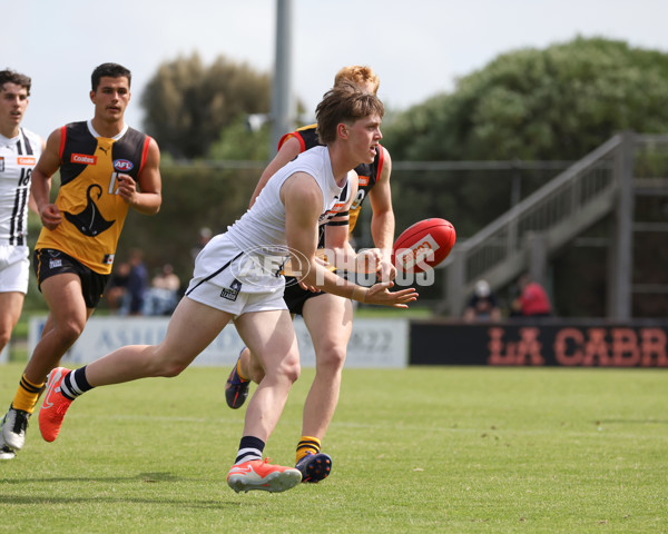 MELBOURNE, AUSTRALIA - MARCH 30: Fred Lucas of the Falcons handpasses the ball during the 2025 Coates Talent League Boys Round 01 match between Dandenong Stingrays and Geelong Falcons at Trevor Barker Beach Oval on March 30, 2025 in Melbourne, Australia. (Photo by Rob Lawson/AFL Photos)