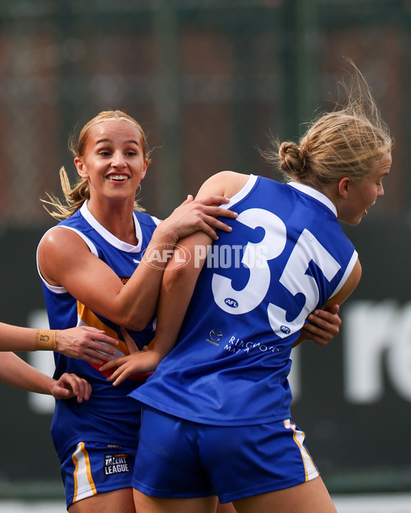 MELBOURNE, AUSTRALIA - MAY 04: Brylee Anderson of the Ranges celebrates after kicking a goal during the 2025 Coates Talent League Girls Round 04 match between Eastern Ranges and Gold Coast Suns Academy at Box Hill City Oval on May 04, 2025 in Melbourne, Australia. (Photo by Craig Dooley/AFL Photos)