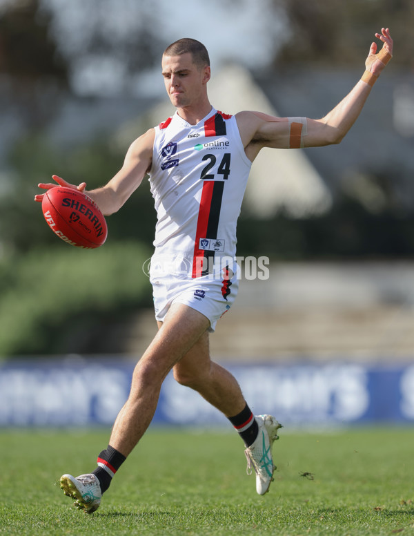 MELBOURNE, AUSTRALIA - JULY 28: Matt Johnson of the Dolphins warms up during the 2024 VFL Round 18 match between Coburg and Frankston at Piranha Park on July 28, 2024 in Melbourne, Australia. (Photo by Rob Lawson/AFL Photos)